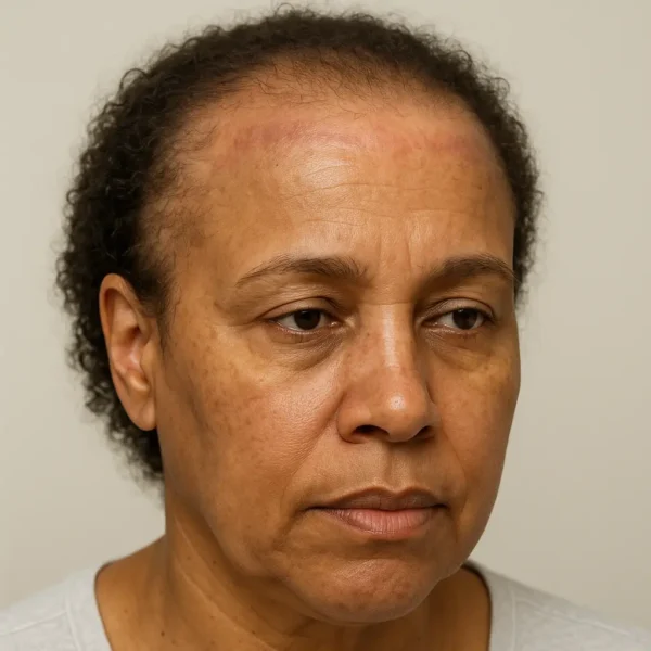 Epidemiology and who is affected: The true population prevalence remains uncertain because many studies are clinic-based. Nevertheless, large multicentre cohorts and regional series agree that FFA predominantly affects women in mid- to later life; men present less often but may show prominent facial involvement (e.g., papules) and similar scalp patterns. The disease has been reported in all skin phototypes. Recent overviews also emphasize that FFA is a generalized process for some patients, with loss of body hair, facial papules, and peri-facial pigmentary changes alongside scalp recession.